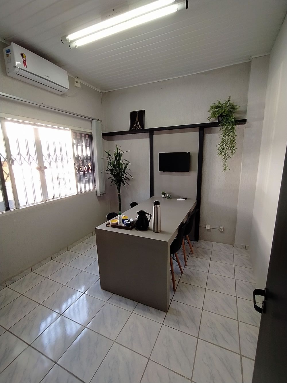 (Recepção, área de trabalho compartilhado, sala de reunião, cozinha e lavabo)